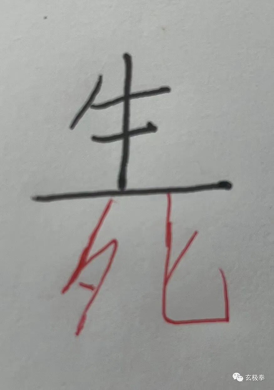 您看,这个“一”之上是个“牛”字,那就是说,只要您能把“一太极”做到很牛的地步,那您就一定得“生”。反之,如果“一太极”做得不到位,乃至很烂很糟糕,如同夕阳西下,再插上一把匕首,那就是“死”。
