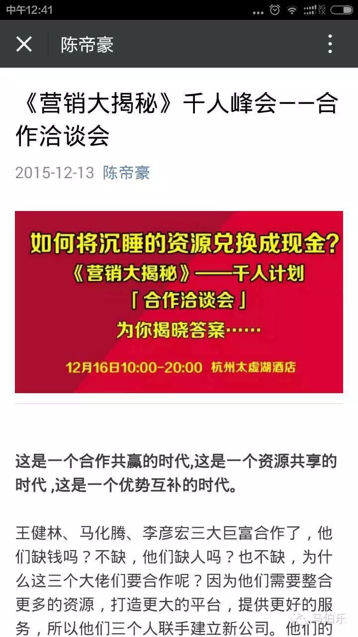 也是我们老马家的一个牛人!扳指头数一数,老马家除了我是个人才之外,其他都是天才哦,马云、马化腾、马明哲……