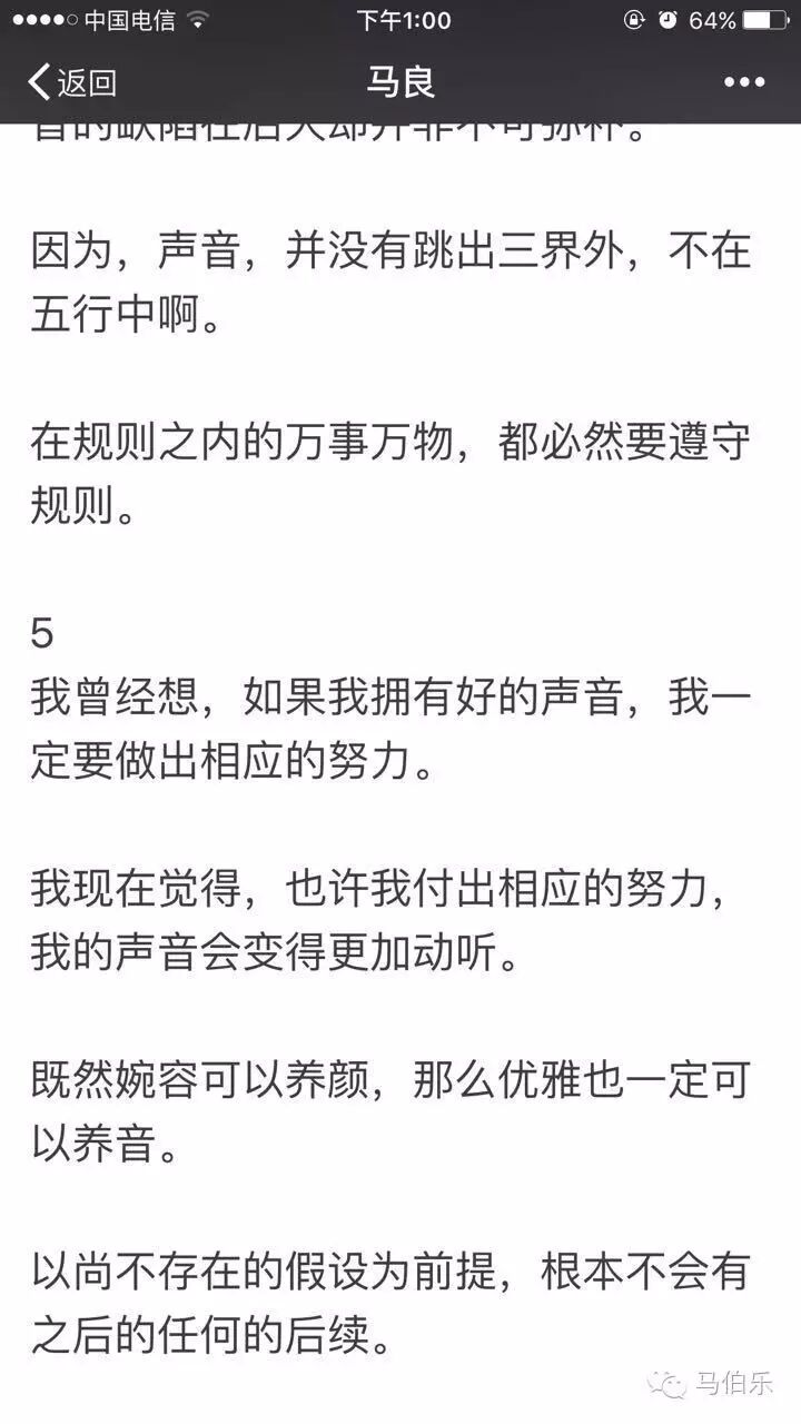 这又让我想到了前几天,看到微信公众号“马良”里的一篇文章,《你有美妙的声音吗?》,我好像理解了里面的一句话: